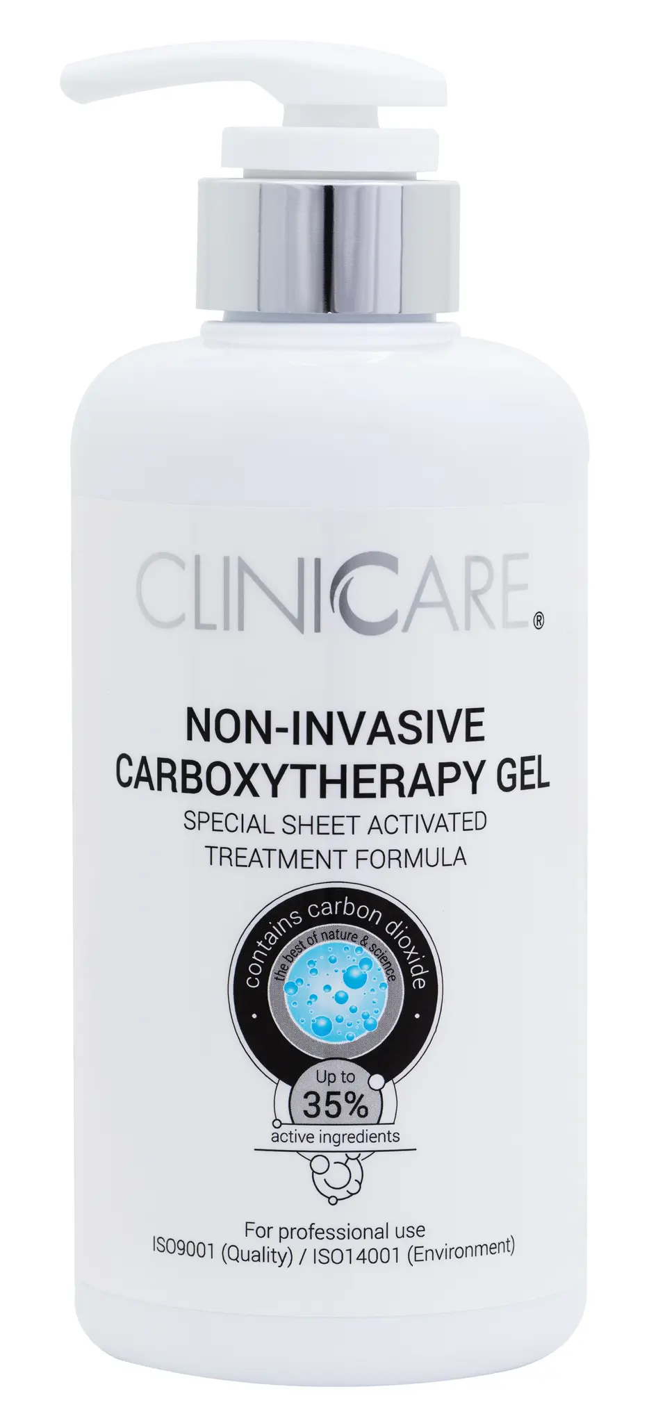 CLINICCARE™ carboxytherapy is a non-invasive professional treatment based on a special CO2 enriched gel and an activating mask for stimulating circulation and collagen production.